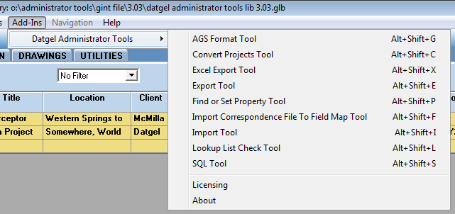 Select the INPUT | Add-Ins > Datgel Administrator Tools then select a menu item.