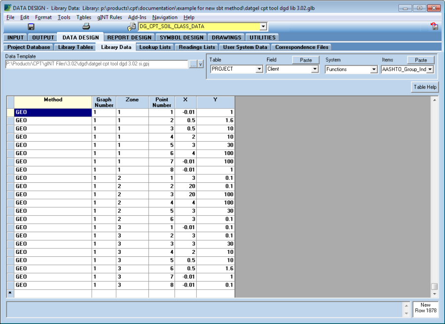 The process of defining a Project SBT is very similar to defining a Library SBT. In the project file you can use split screens and have data relationships between tables, which makes the user interface more intuitive and logical. One major data entry differences is that Point Number on Soil Class Data is a text type field, and it needs data that will order correctly as text, hence enter numbers padded with a zero e.g. 01.