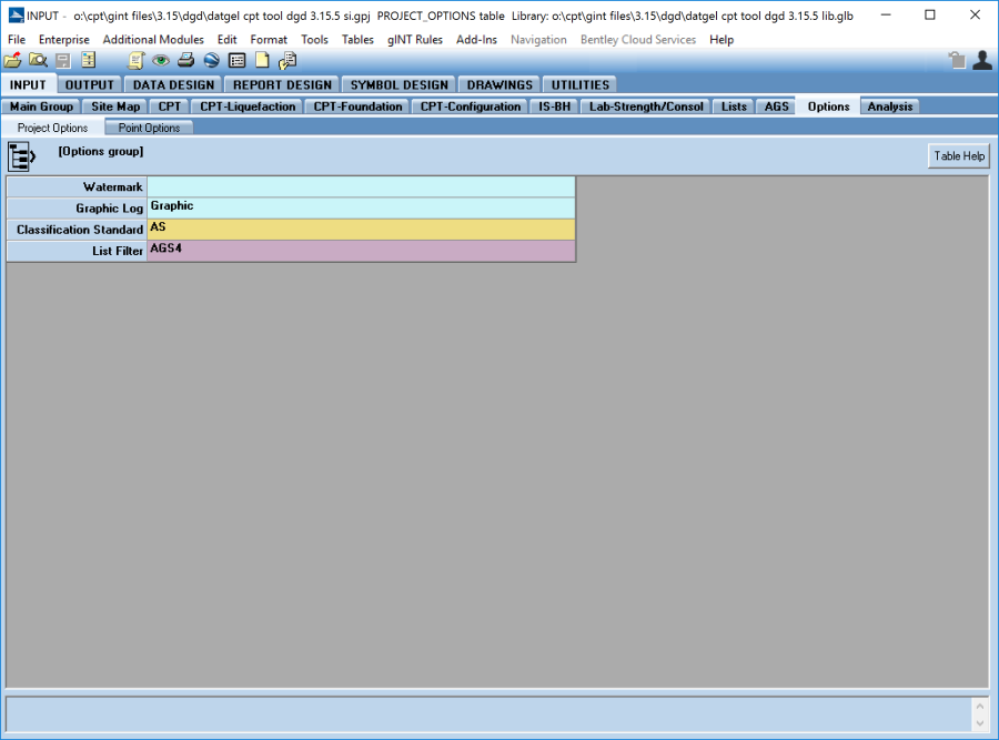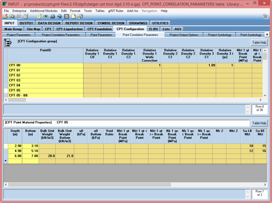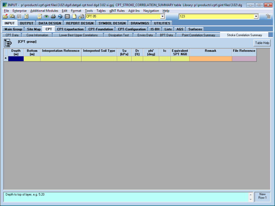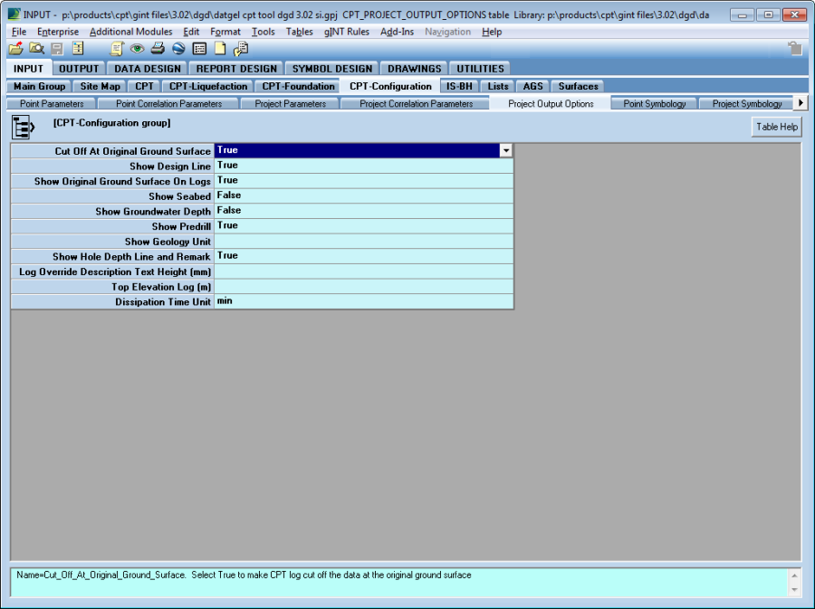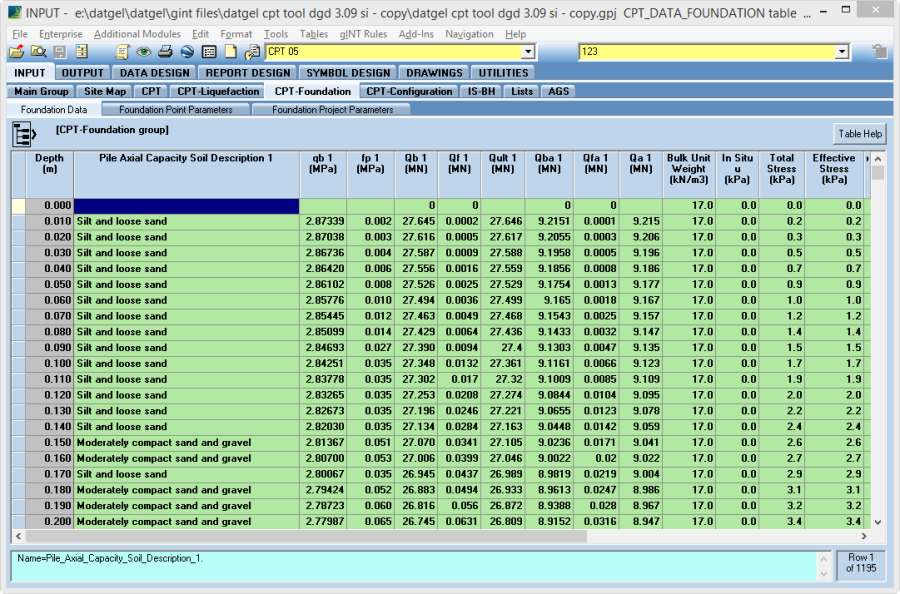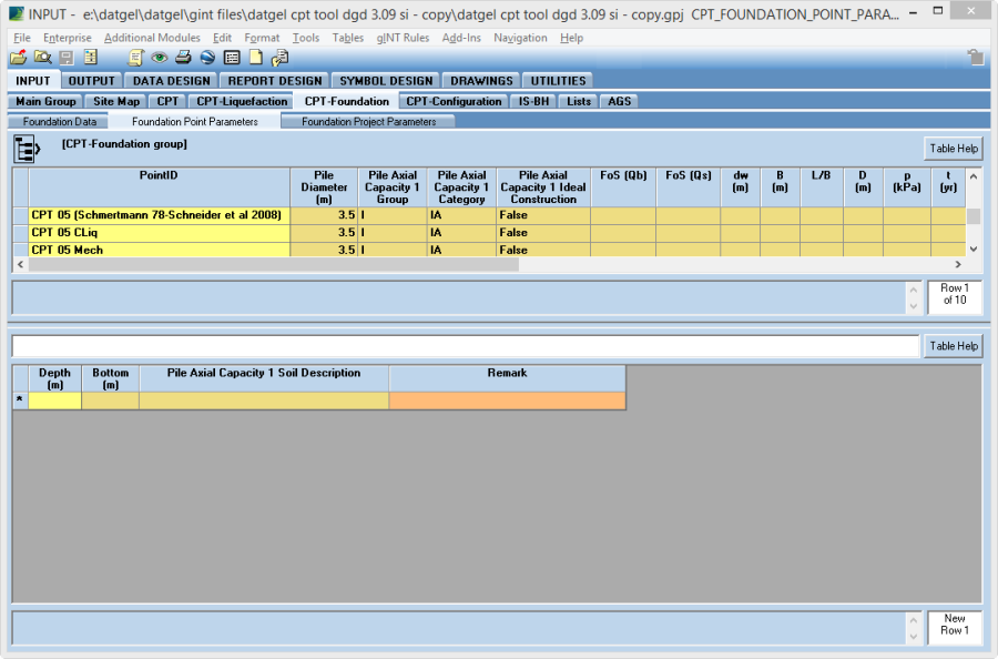 This table stores the Point level constants and assumption values related to derived parameters and soil behaviour type calculations. Hence if you wish to set the groundwater depth for all strokes for a PointID then that value should be entered into the Groundwater_Depth field on the CPT_POINT_PARAMETERS Table.