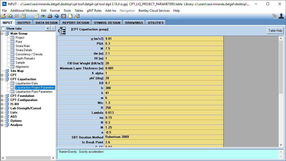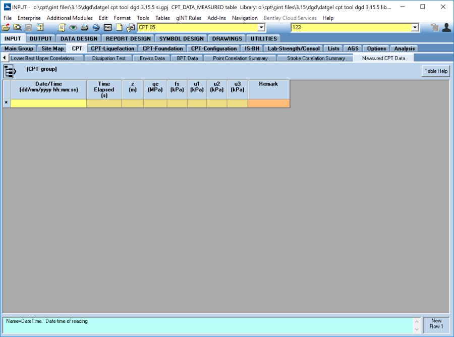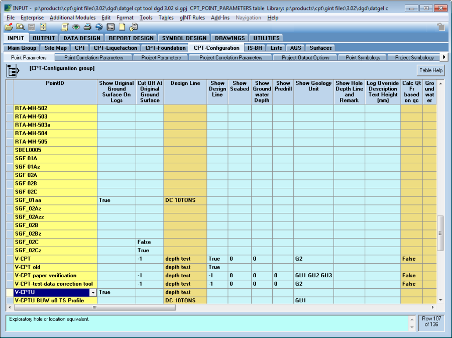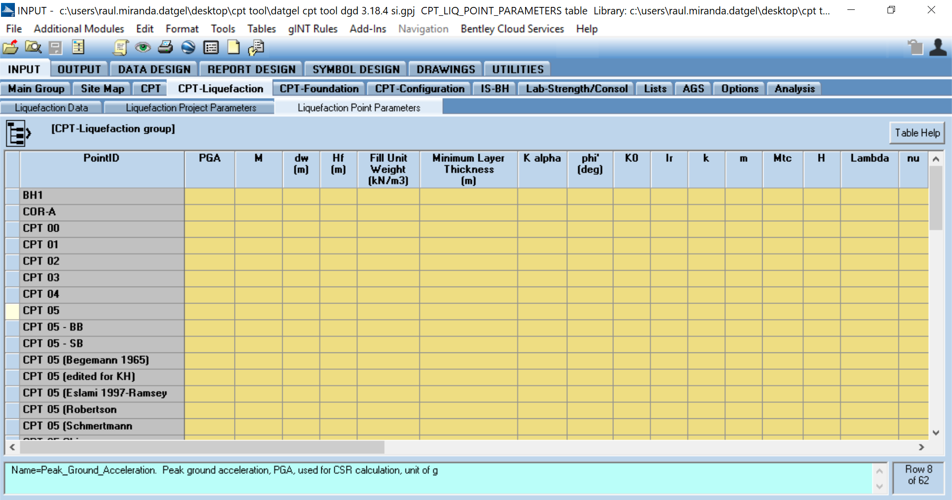 This table stores the Point level constants and assumption values related to derived parameters and soil behaviour type calculations. Hence if you wish to set the groundwater depth for all strokes for a PointID then that value should be entered into the Groundwater_Depth field on the CPT_POINT_PARAMETERS Table.