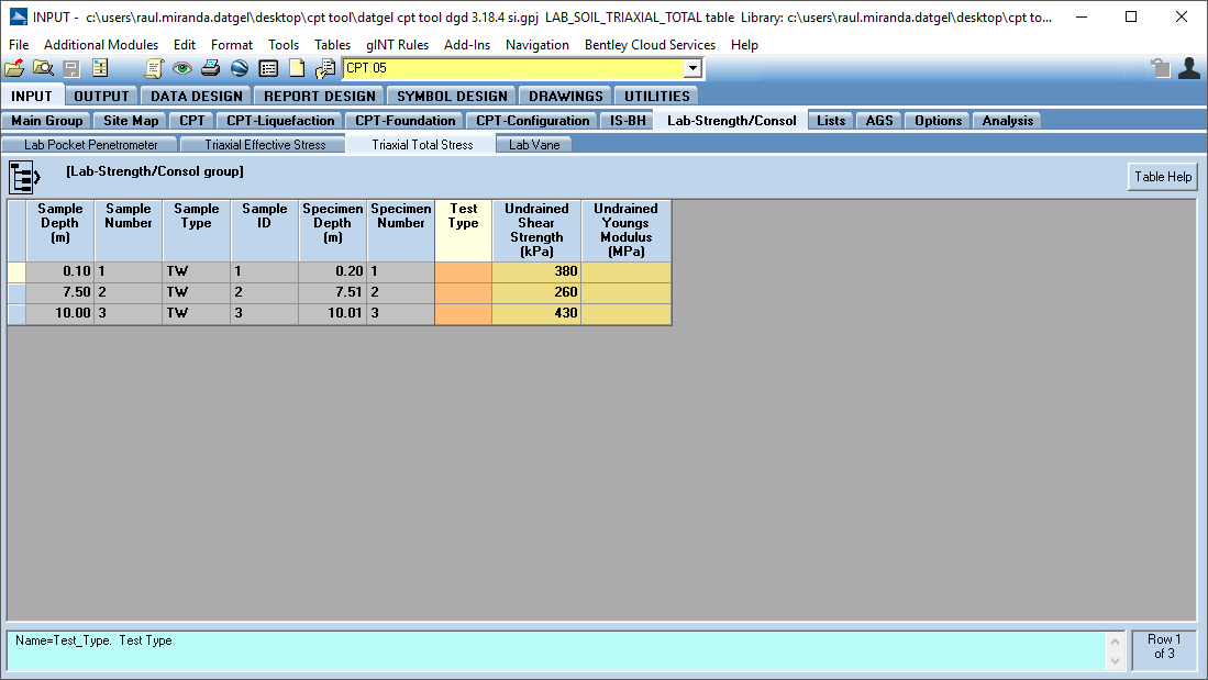 Triaxial Test Results (LAB_SOIL_TRIAXIAL_TOTAL and LAB_SOIL_TRIAXIAL_STRESS)