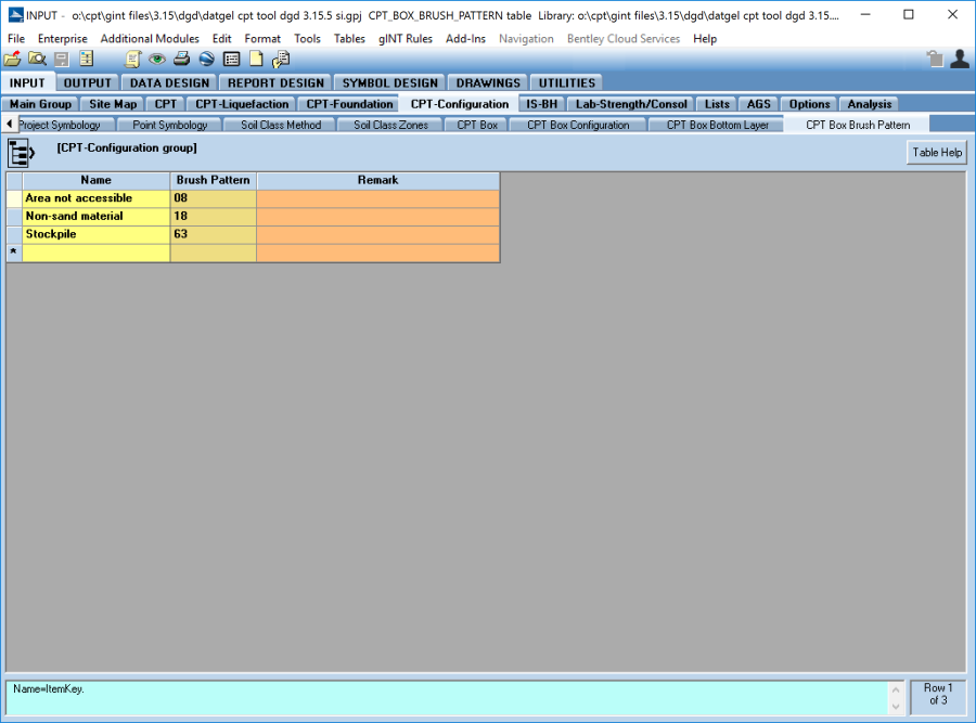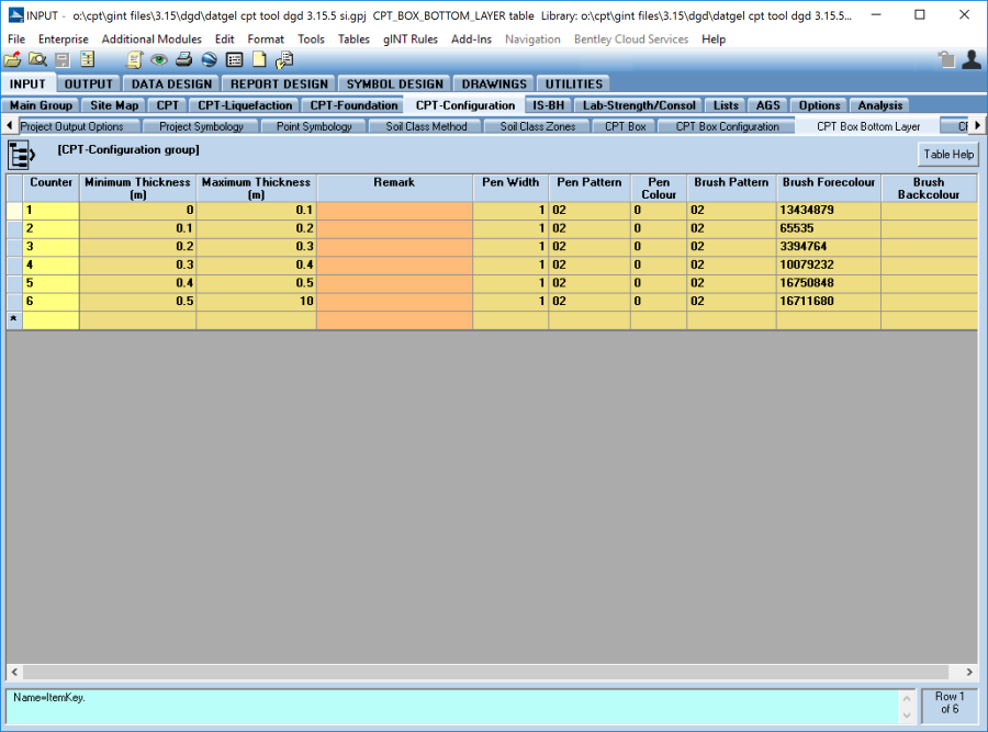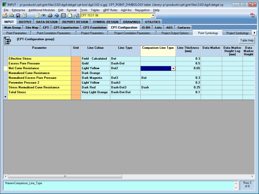 This table stores Project level overrides for the settings on DG_CPT_SYMBOLOGY. You can set scales, line types etc. for each parameter here for the entire project.