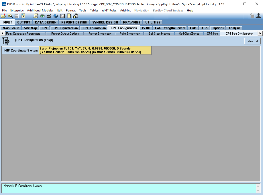 The CPT Box Configuration table stores the information related to the MIF Coordinate System.