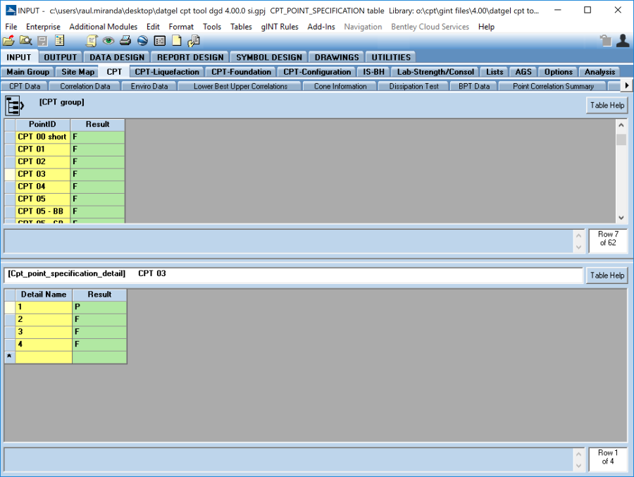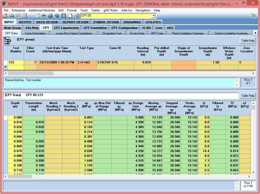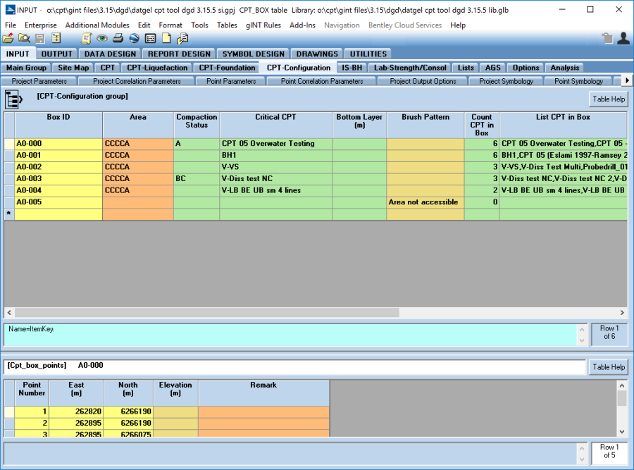 The CPT Box tables store both the results of the calculations and the coordinates of the CPT Boxes