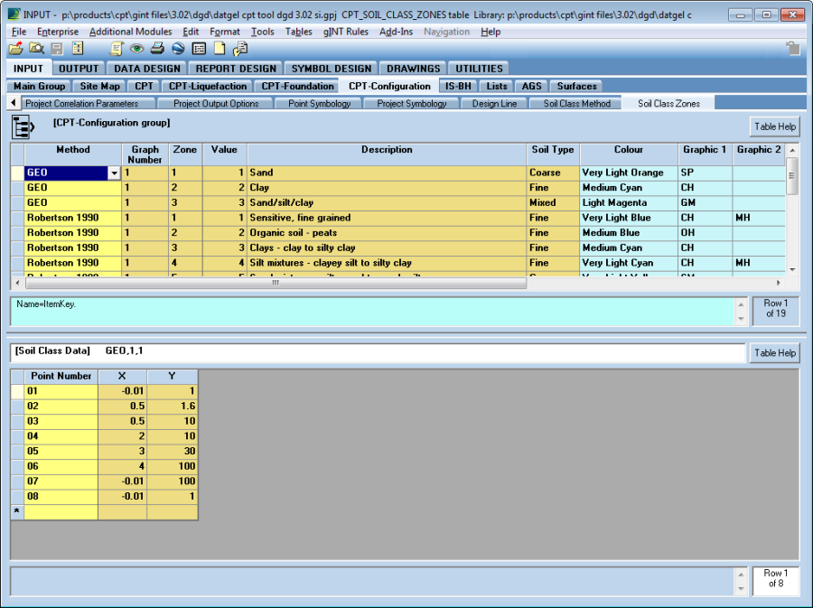Soil Class Zones (CPT_SOIL_CLASS_ZONES and CPT_SOIL_CLASS_DATA)