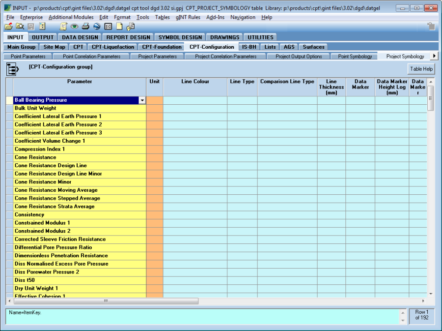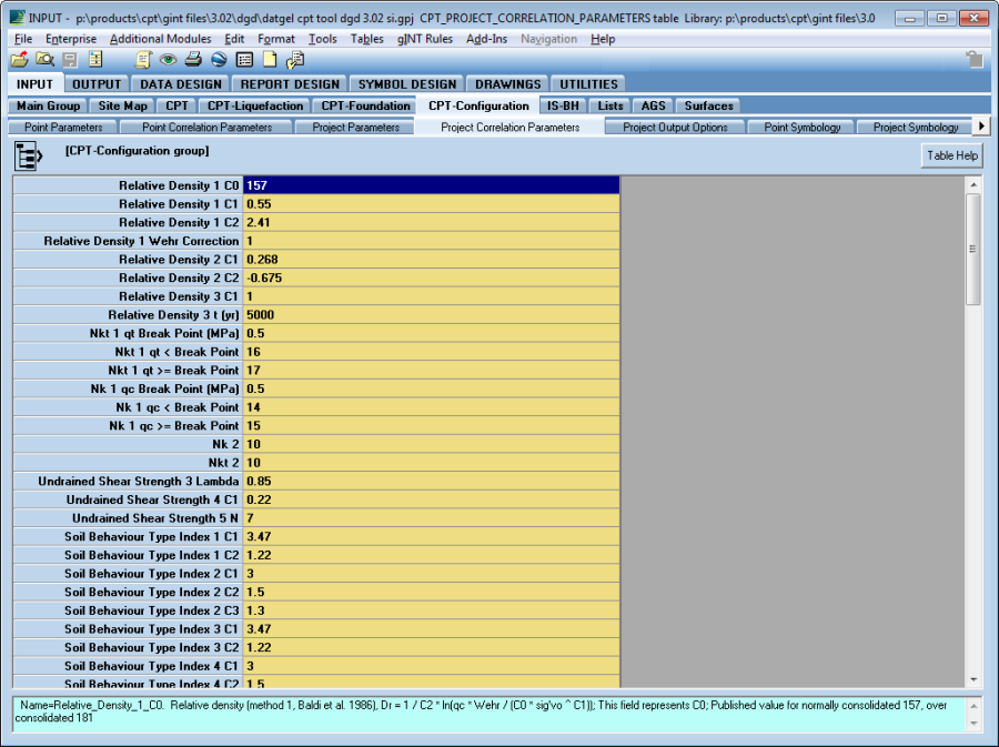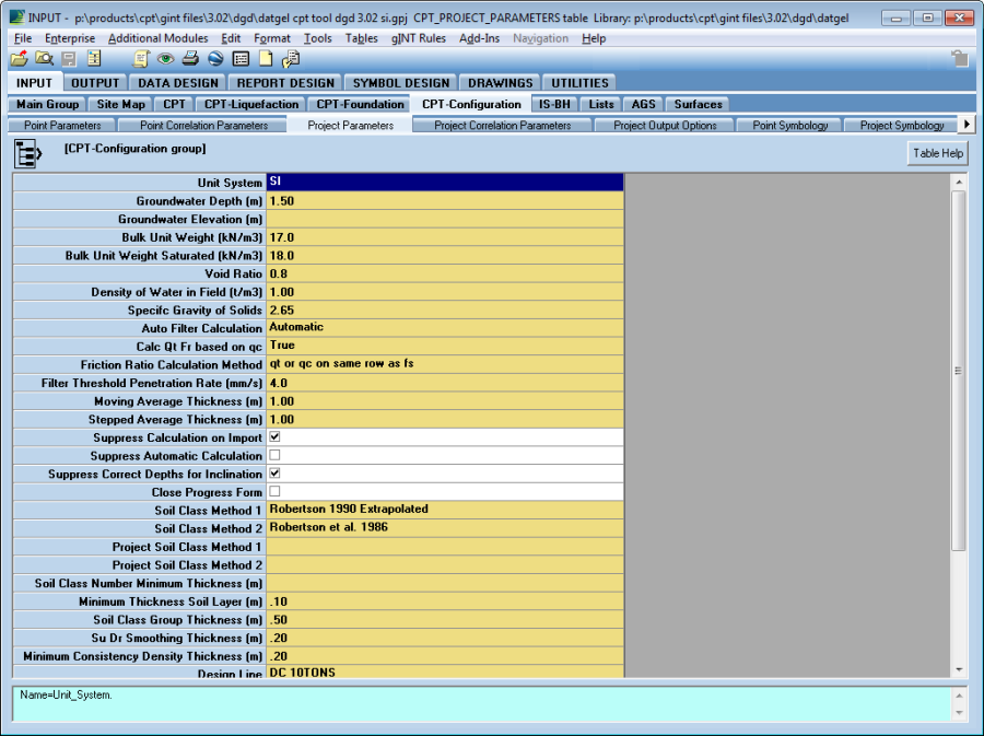 Project level constants and parameters related to derived parameter and soil behaviour type calculations are stored on this table.