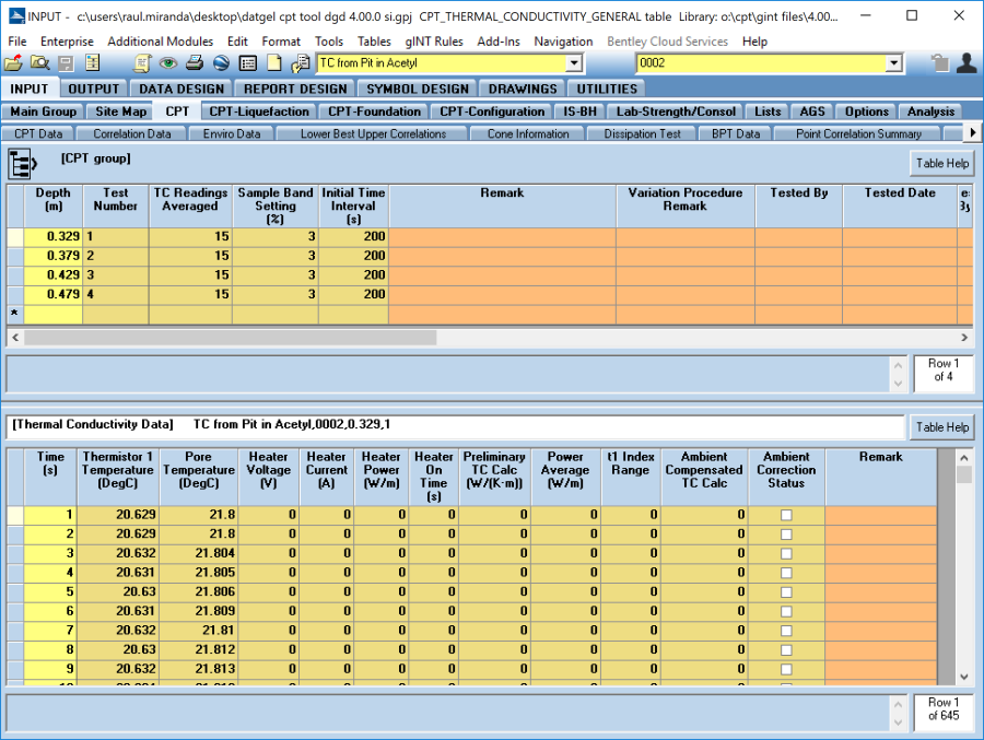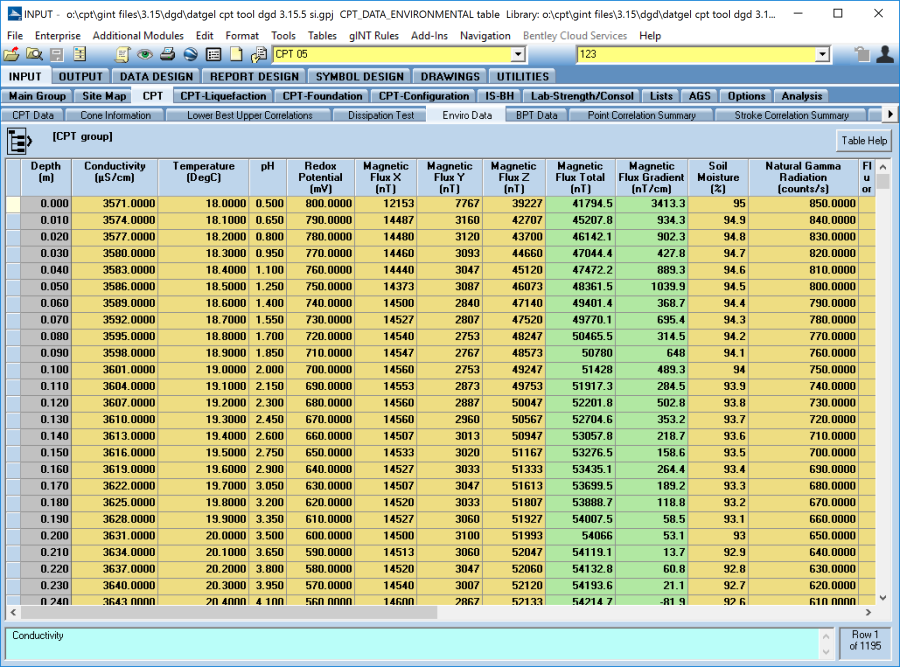 This table is a one-to-one child of CPT_DATA, and stores environmental and some geophysics related results.