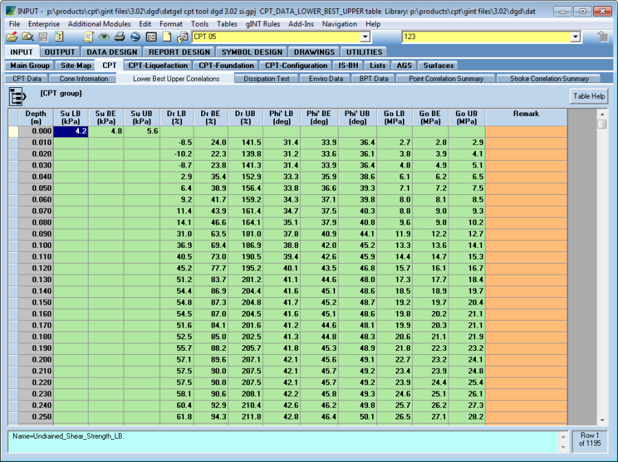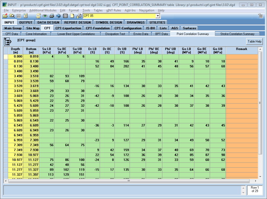This table is a one-to-one child of CPT_DATA, and stores a selection of correlations with results for Lower Bound, Best Estimate and Upper Bound.