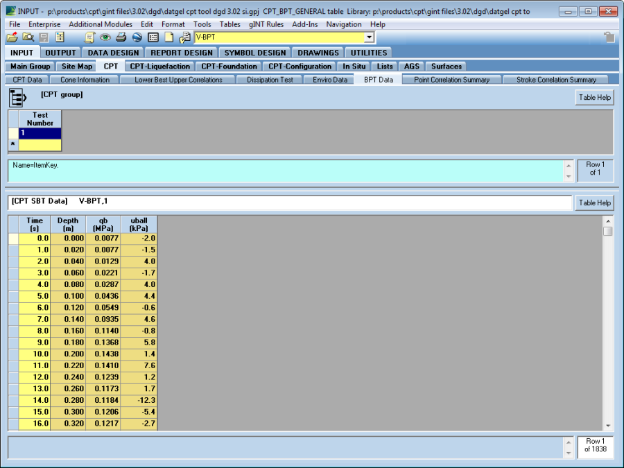 This table defines each CPT stroke within a PointID, since under some circumstances multiple CPT strokes take place in the same hole. Each stroke has a unique Test Number.