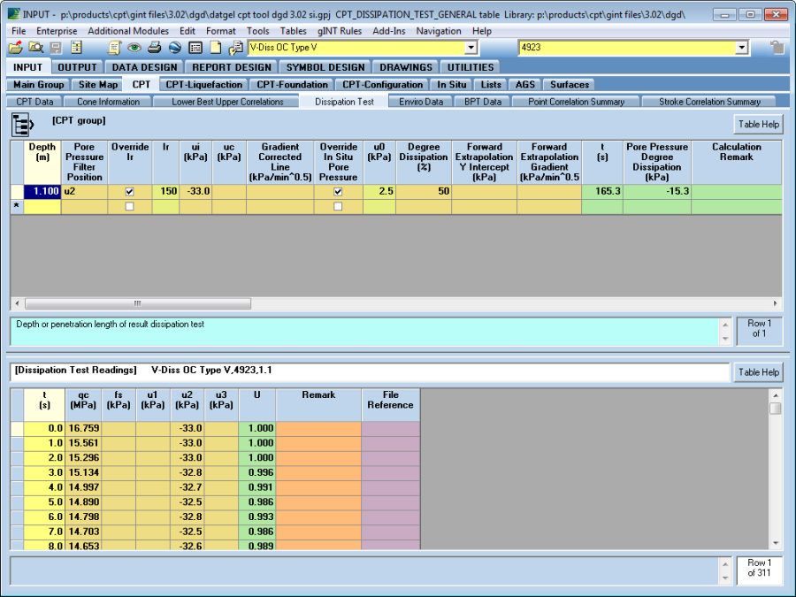 Dissipation Test (CPT_DISSIPATION_TEST_GENERAL and CPT_DISSIPATION_TEST_READINGS)