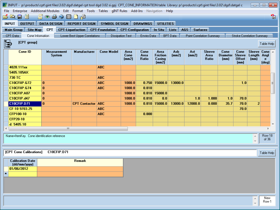 Cone Information - Lower (CPT_CONE_CALIBRATION)