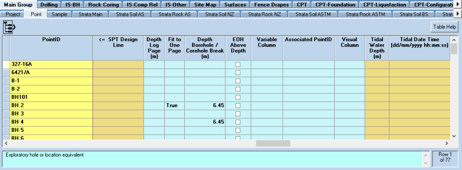 POINT.Variable_Column: Used by a limited number of logs to define if DCP, Piezometer or Additional Observations data will display in column on right side of log. Applies to reports: