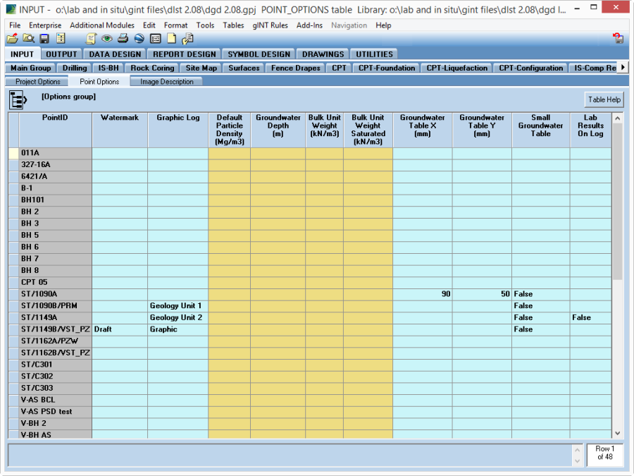 - If you have entered data on the In Situ Point Options and / or In Situ Project Options tables, then the Total_Stress, Effective_Stress and C_N fields will be automatically calculated when you change table or click save (Ctrl+S).