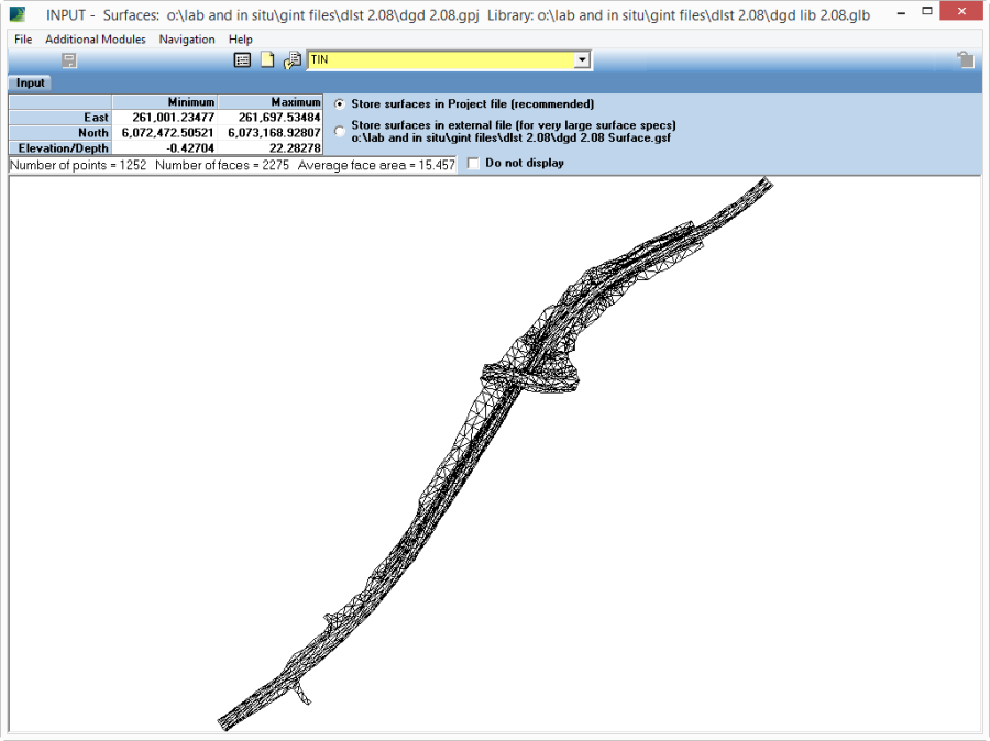 next to the Surfaces Support item.The Surfaces group allows you to store surface definitions, such as the ground surface level, geological unit boundaries, finial design elevation and piezometric surfaces. gINT supports both grid surfaces and TIN or DTM surfaces.