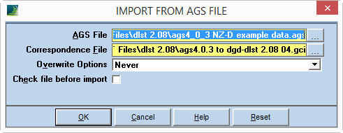 In Input, select File > AGS File > Import from AGS File and the following dialog appears: