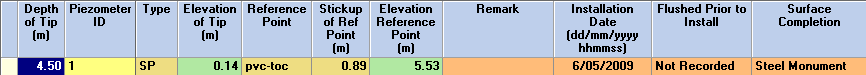 - Select the Piezometer_ID from the drop down list (from the Piezometer table)