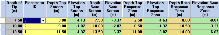 - Enter the Depth_Top_Response_Zone for the top depth of each zone of permeable backfill material