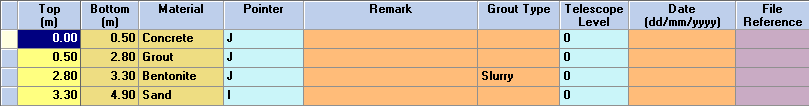 - Select the Grout_Type based on the information entered on the Grout_Type table for each zone of backfill material