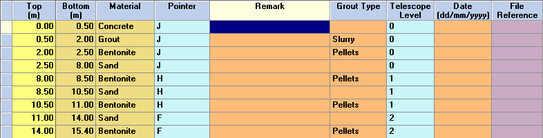 - Select the Telescope_Level for each material type based on the hole diameter (see Backfill) for each zone of backfill material