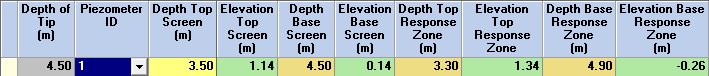 - Enter the Depth_Top_Screen (e.g. for the top of the slotted section of each pipe)