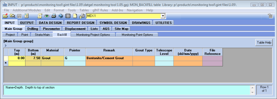 This table contains standard information that is referenced by the other Magnetic Extensometer tables. It can be edited to suit the needs of an individual project and, if it is incorporated into your data template, the information will available in each new project file that is cloned from the new data template.