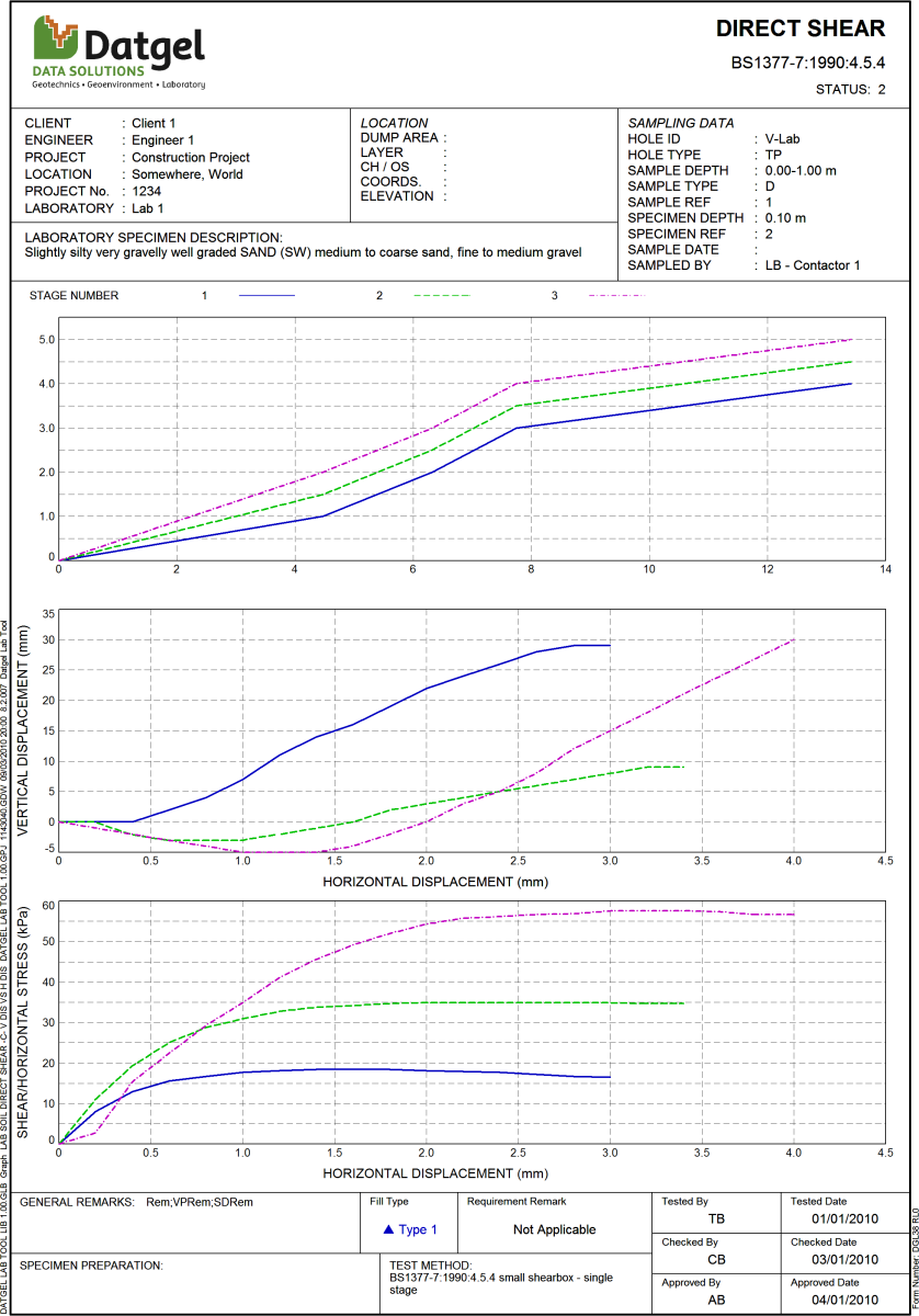 The reports used in the examples are similar to those in the Datgel DGD Tool Professional, and Lab and In Situ Tool.