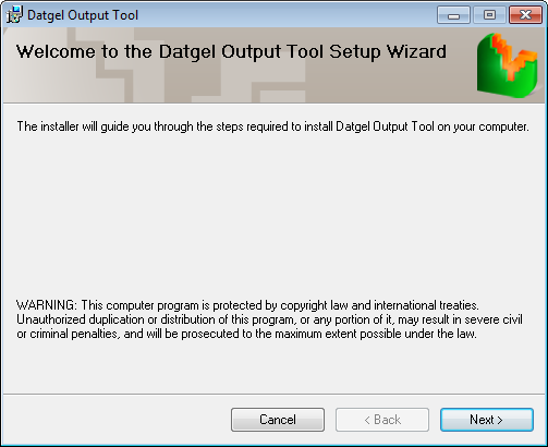 - Click Next on the Welcome to the Datgel Output Tool Setup dialog.
