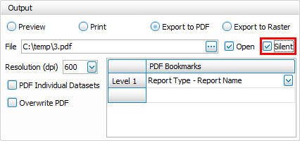 - Click on the Silent option to prevent the error report form from displaying at the end of the output run.