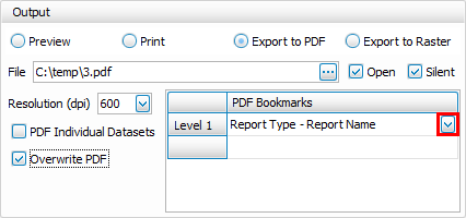 - Click on the Remark option to use this Bookmark type. This will result in the Reports grid remark field being used as the PDF bookmark