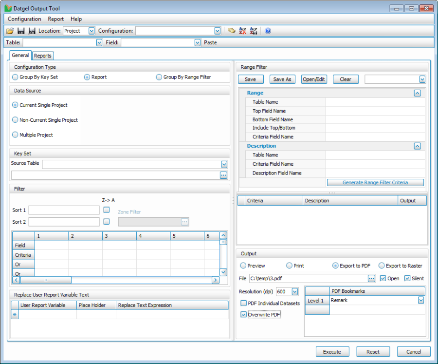 - On the Output Tool form, click Execute to generate the Output. You will then be prompted if you wish to save the output configuration or cancel the output run and you should make your choice accordingly.