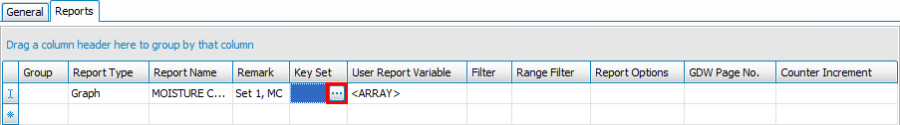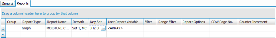 - In the Key Set column on the row that contains the MOISTURE CONTENT VS DEPTH Graph report, click on the