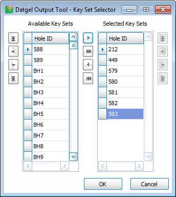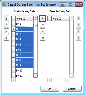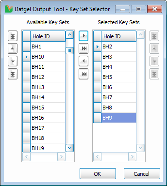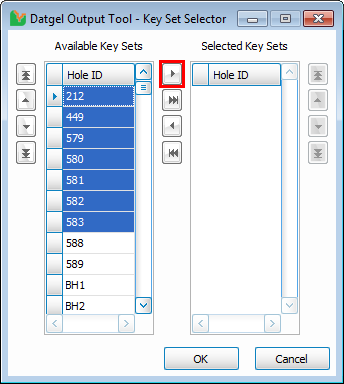 button to add them to the Selected Key Sets grid. - Click OK to accept the Selected Key Sets.