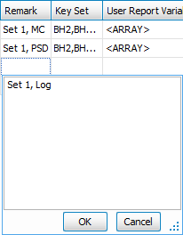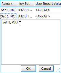 - In the Remark column, on the row that now contains the PSD MULTIPLE Graph report, you should change the text from Set 1, MC to Set 1, PSD and then click OK.