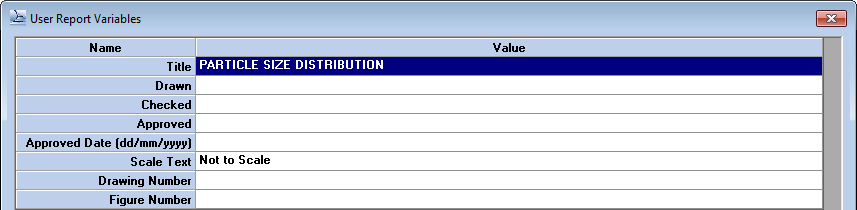 - This will launch the gINT Output User Report Variables dialogue window and if you wish, you can enter the details you require. Click OK to accept the data you have entered or Cancel to discard them.