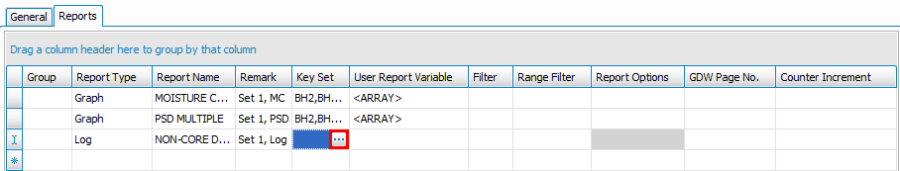 - In the Key Set column on the row that contains the NON-CORED DRILL HOLE Log report, click on the