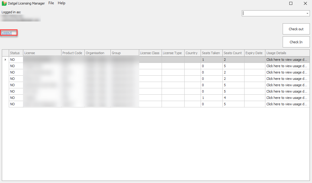 - Click Logout on the Datgel License Manager